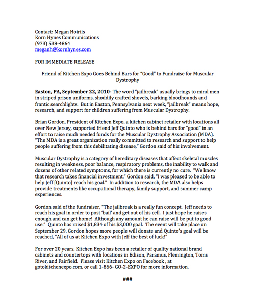 "Friend of Kitchen Expo Goes Behind Bars for "Good" to Fundraise for Muscular Dystrophy."