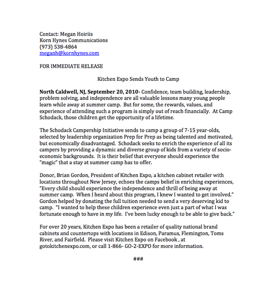 "Kitchen Expo Sends Youth to Camp."