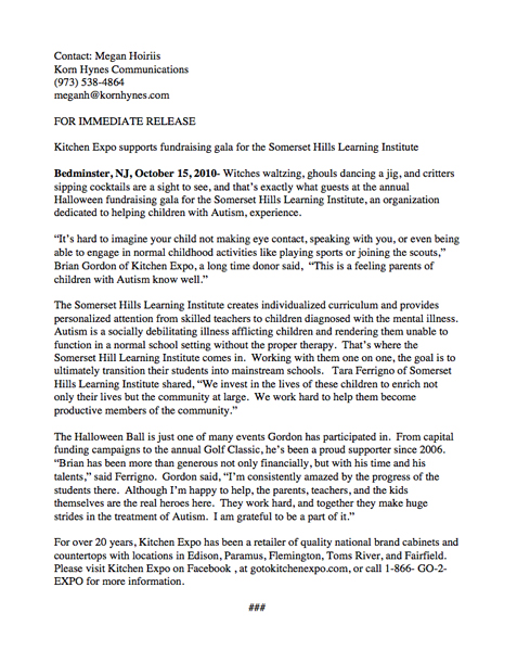 "Kitchen Expo Supports Fundraising Gala for the Somerset Hills Learning Institute."