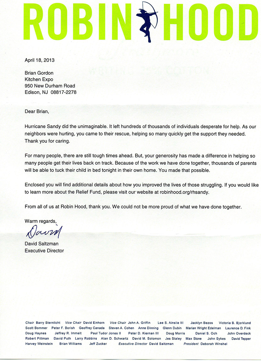 A Letter From The Robin Hood Foundation.
